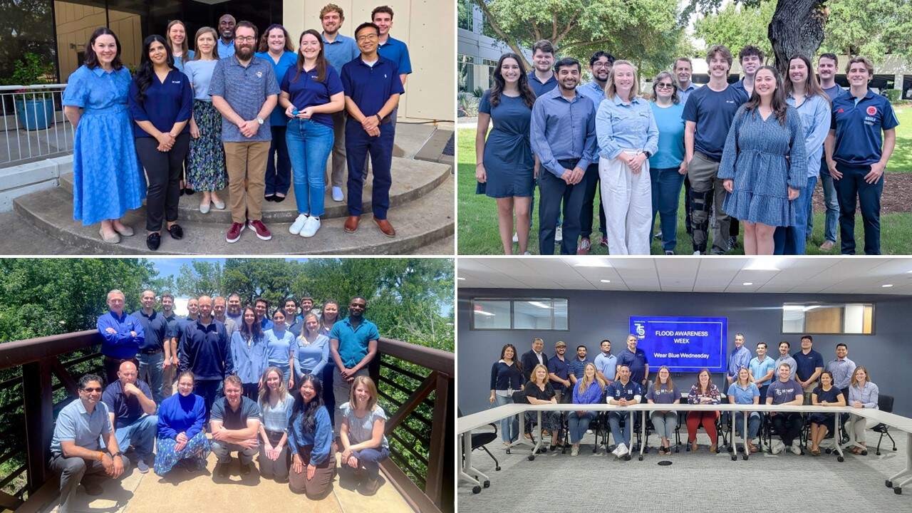 Halff offices across Texas joined together for Wear Blue Wednesday, a tradition led by the Texas Floodplain Management Association (TFMA) during Flood Awareness Week. The initiative encourages people to wear blue to raise awareness about flood safety and preparedness.