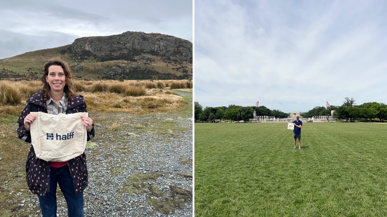 Stephanie Griffin (left) took a trip to New Zealand to visit her son studying abroad! She had the chance to tour the north and south islands with her husband, son and Halff bag.